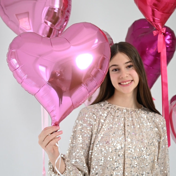 Малиновое металлик сердце японское с изгибом малое шар фольгированный с гелием