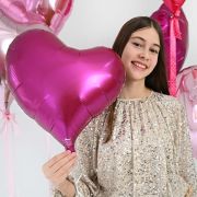 Мажента металлик сердце японское с изгибом малое шар фольгированный с гелием