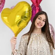 Золотое сердце японское с изгибом малое шар фольгированный с гелием
