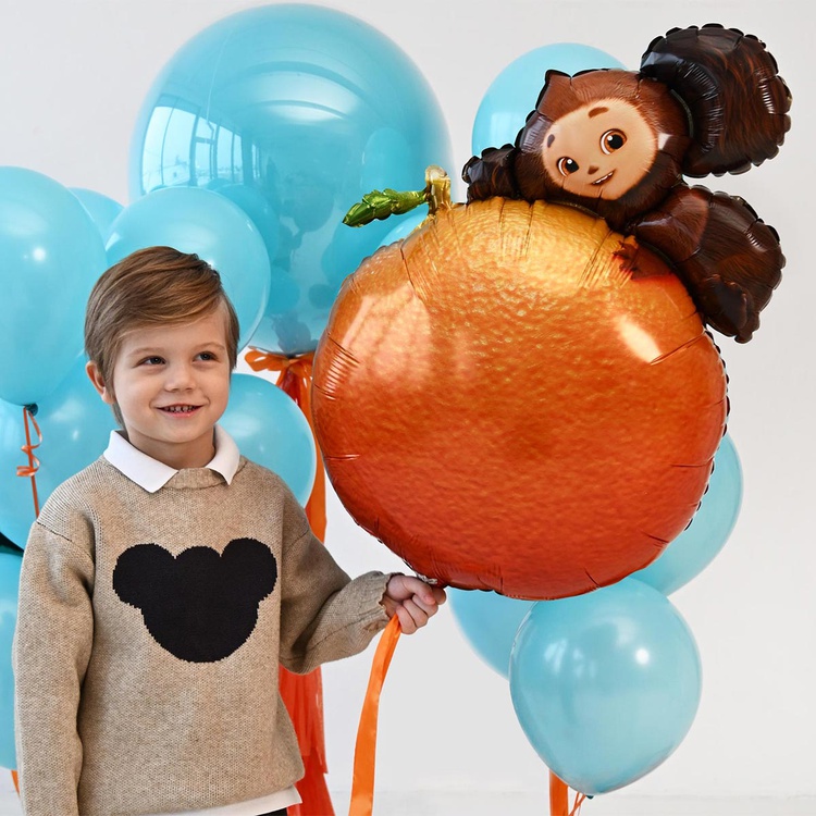 Чебурашка с апельсином шар фигурный фольгированный с гелием