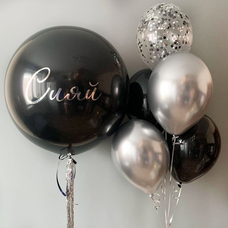 Черно-серебряный сет с большим шаром с гелием