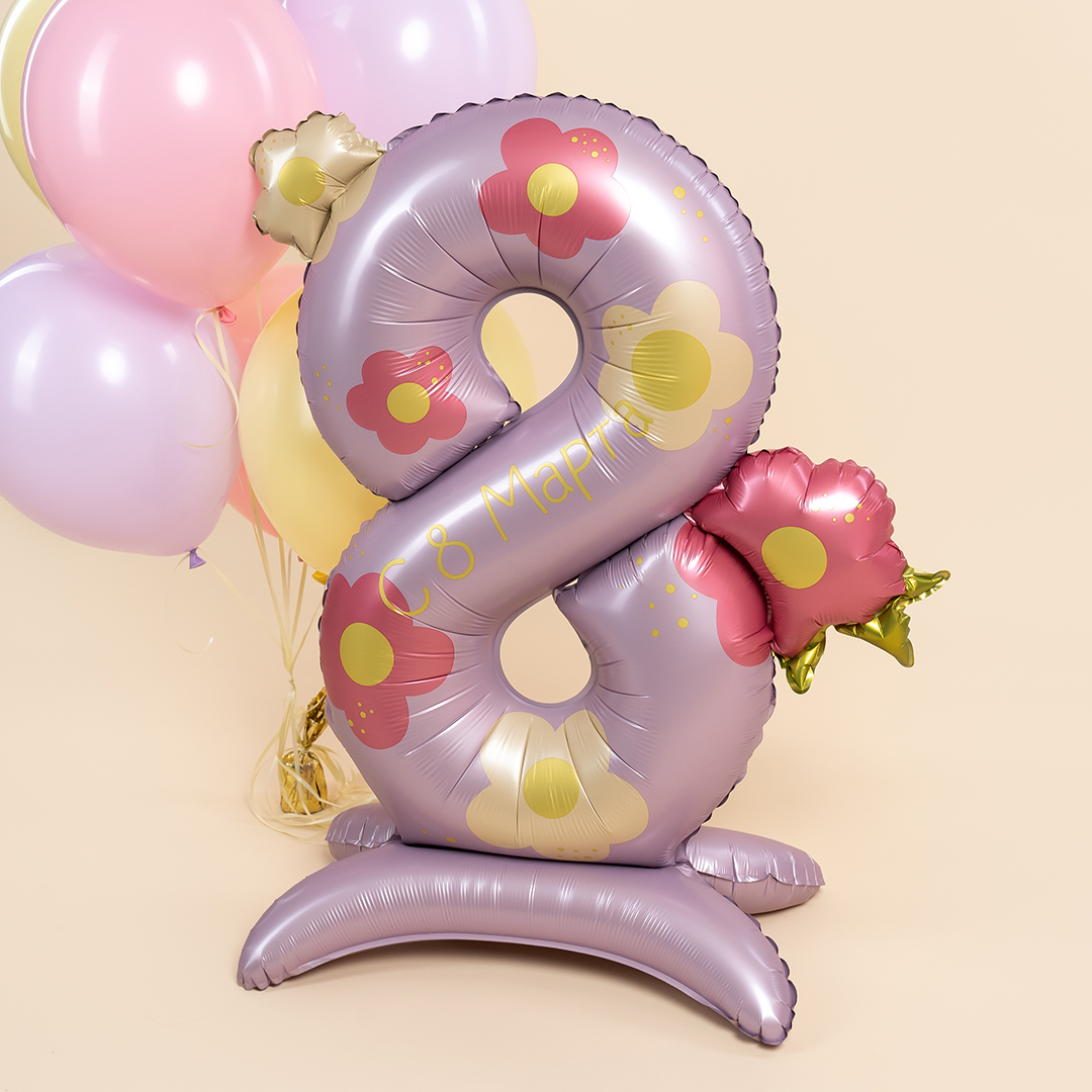 Цифра 8 цветочная шар фольгированный с воздухом на подставке