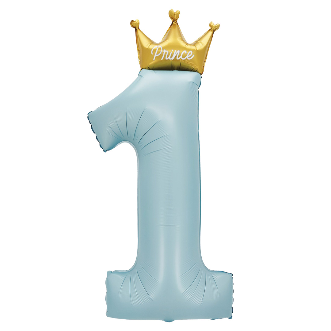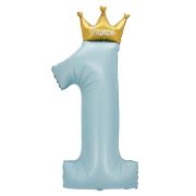 Цифра с короной сатин голубая шар фольгированный с гелием