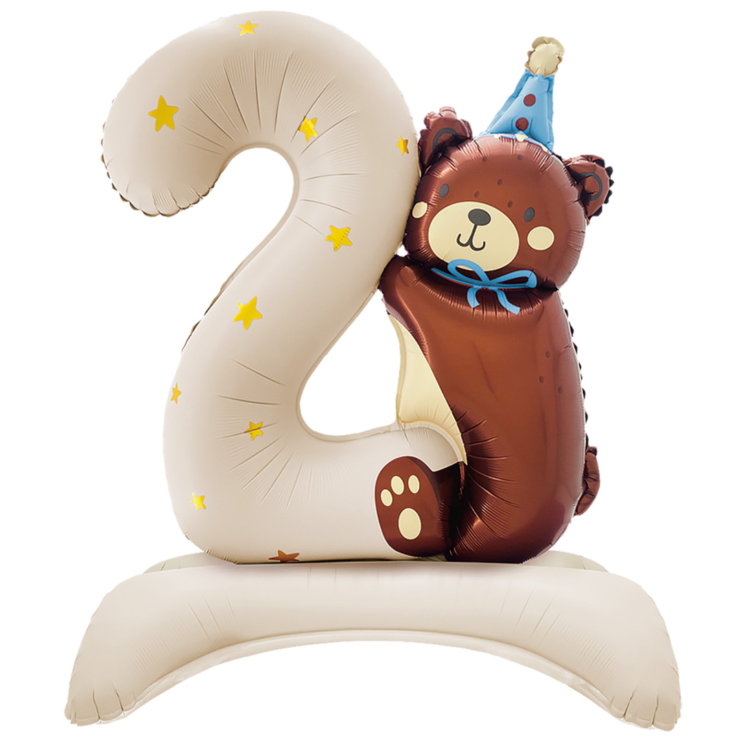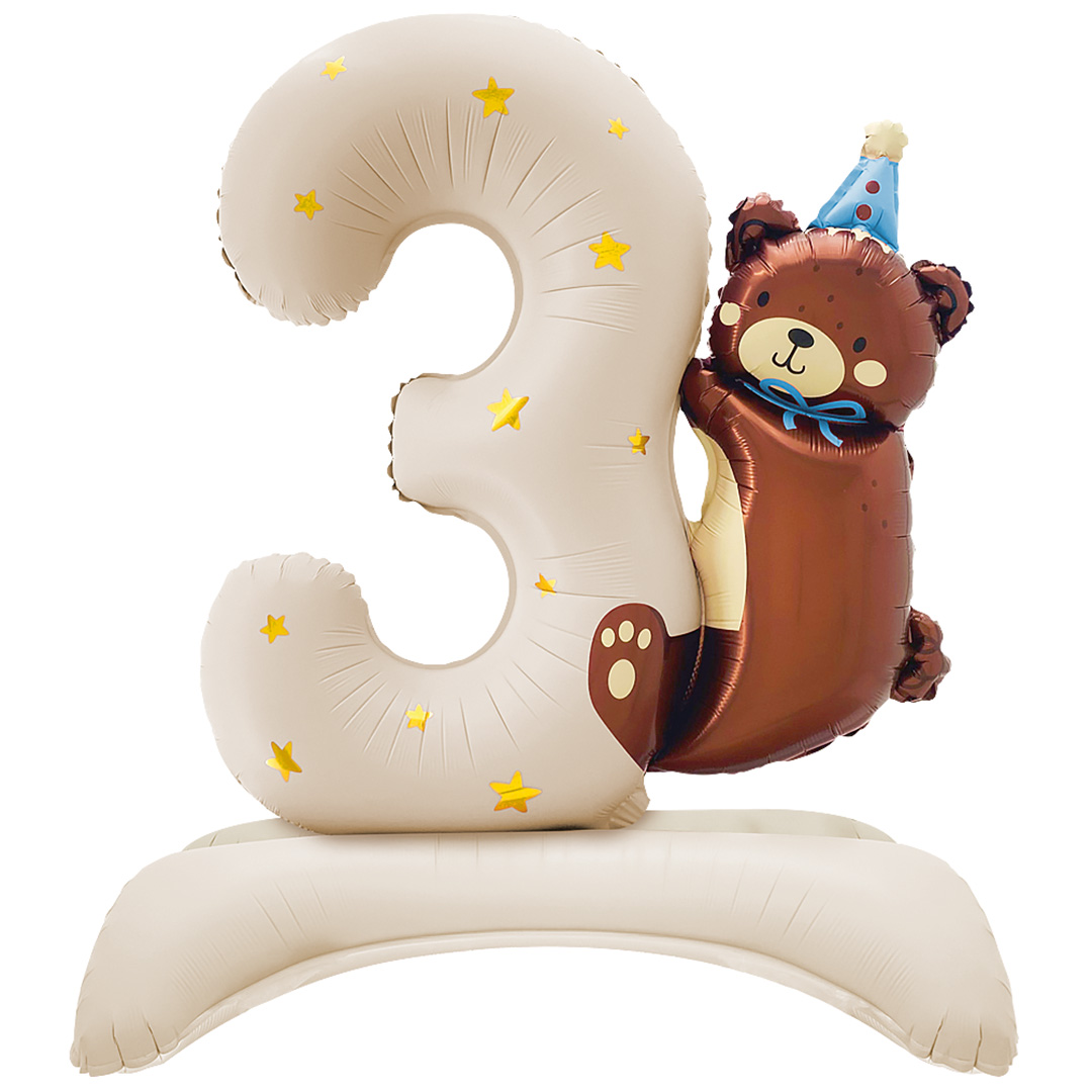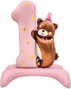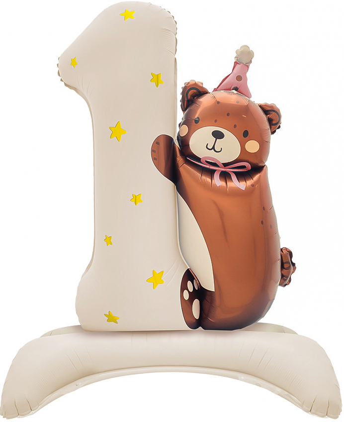 Цифра с мишкой шар фольгированный с воздухом