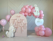 Фотозона с двумя арками с зайчиками из воздушных шаров