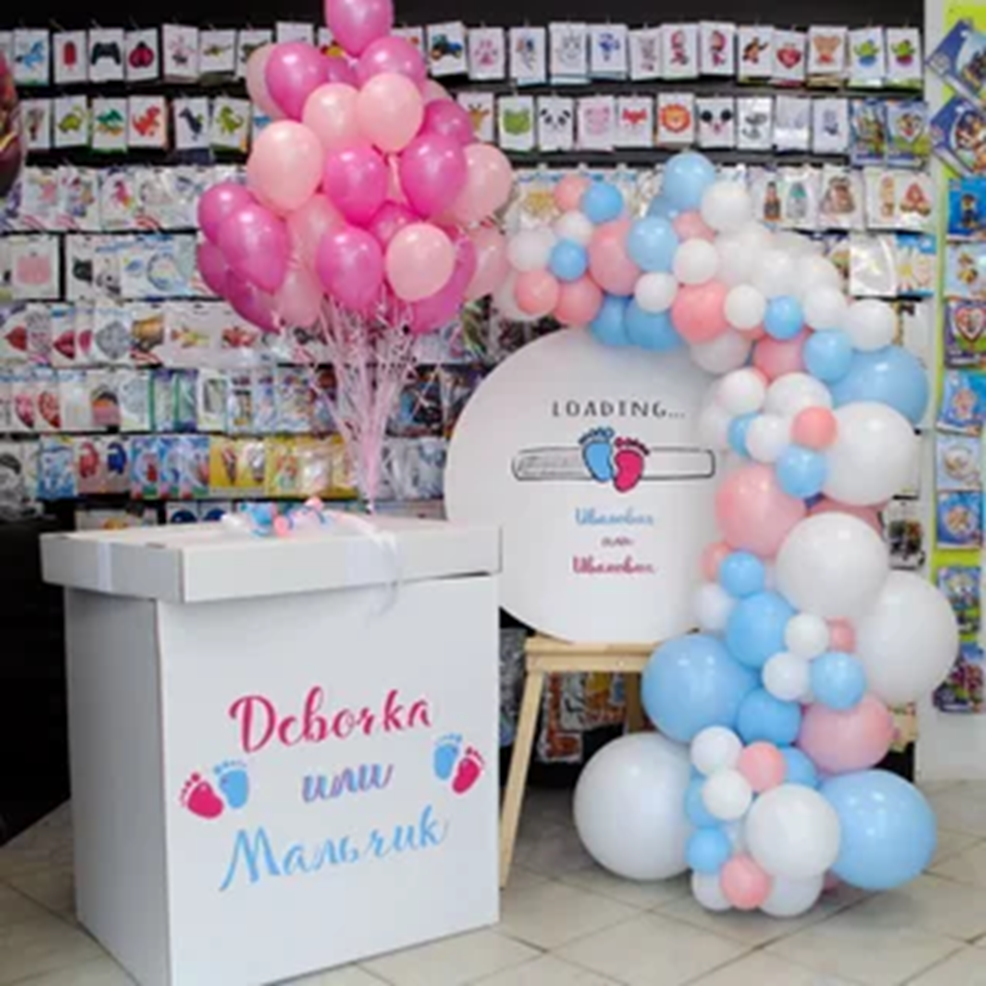 Гендер Пати оформление с мольбертом и коробкой с микро шариками.