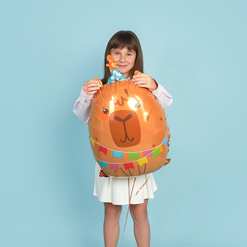 Капибара (Италия) в колпачке и гирлянде шар фигурный фольгированный с гелием