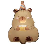 Капибара на палочке в колпачке с тортиком шар фольгированный малый с воздухом