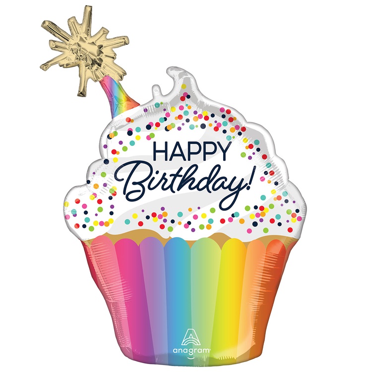 Капкейк с бенгальским огнём радужный шар фигурный фольгированный с гелием