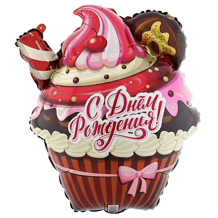 Капкейк вишня в шоколаде шар фигурный фольгированный с гелием