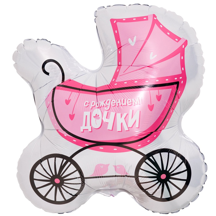 Коляска С рождением дочки шар фигурный фольгированный с гелием