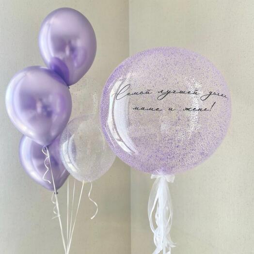 Лиловый сет с баблсом из шаров с гелием