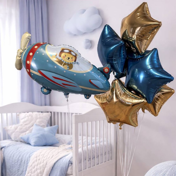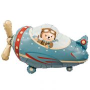 Медвежонок в самолёте шар фигурный фольгированный с гелием