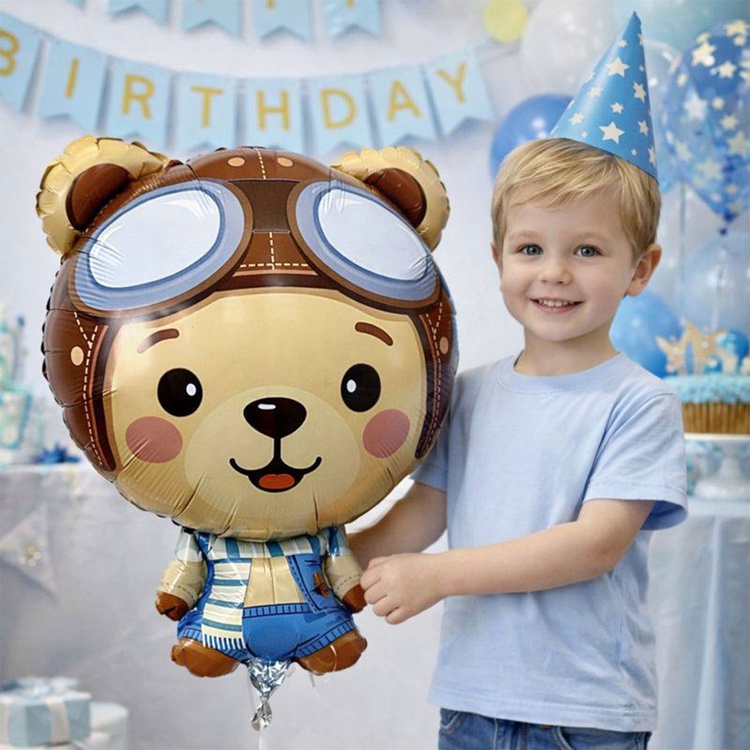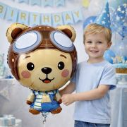 Медвежонок Пилот шар фигурный фольгированный с гелием