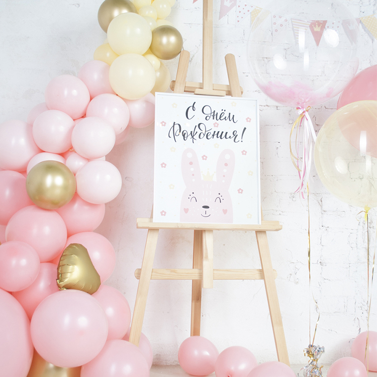 Нежная фотозона с мольбертом с 3 большими шарами с гелием из шаров