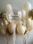 Песочно-золотой сет с шаром баблс из шаров с гелием