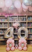 Состав: две цифры на подставках с декором, шар Бабл с вашей надписью, 15 шаров с гелием (из них 6 шаров Хром).