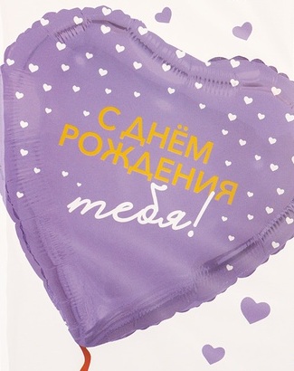 С Днем Рождения тебя сиреневое сердце шар фольгированный с гелием