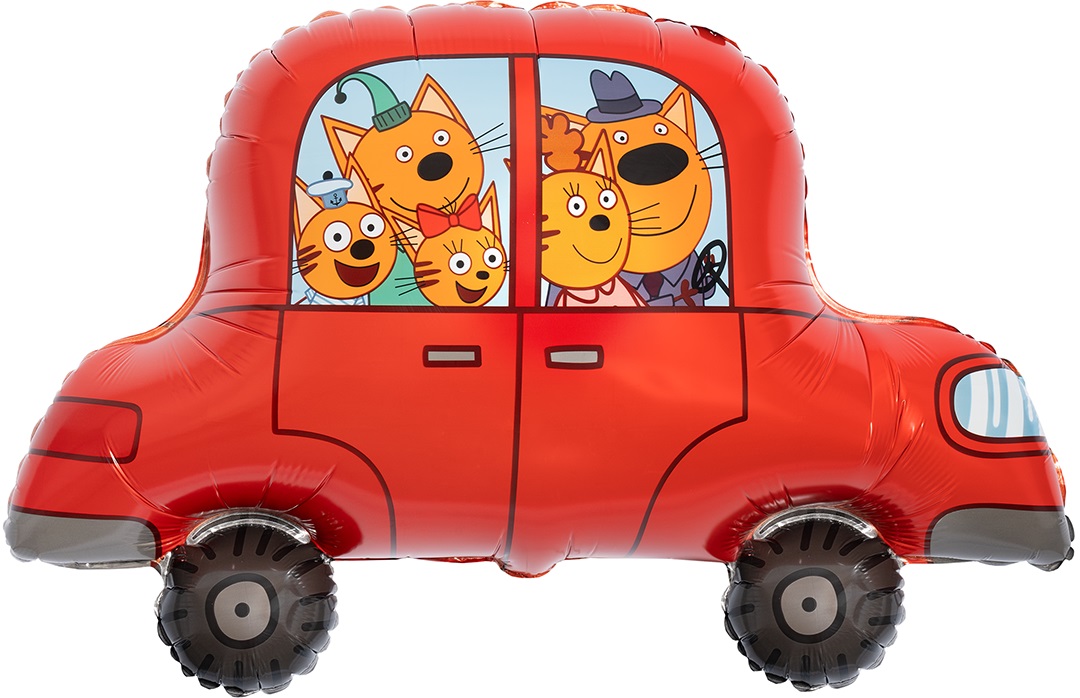 Семейка Три Кота на машине шар фигурный фольгированный с гелием
