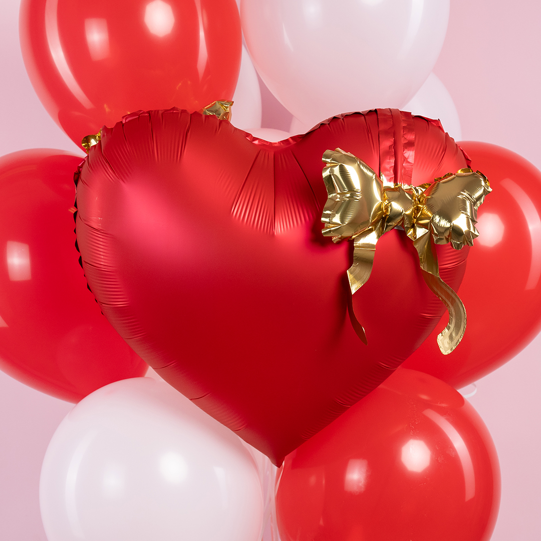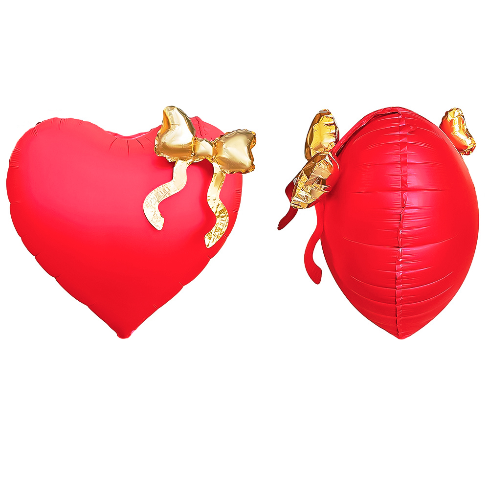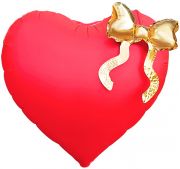 Сердце красное с золотым бантом шар фольгированный с гелием