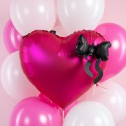 Сердце фуксия с чёрным бантом шар фольгированный с гелием