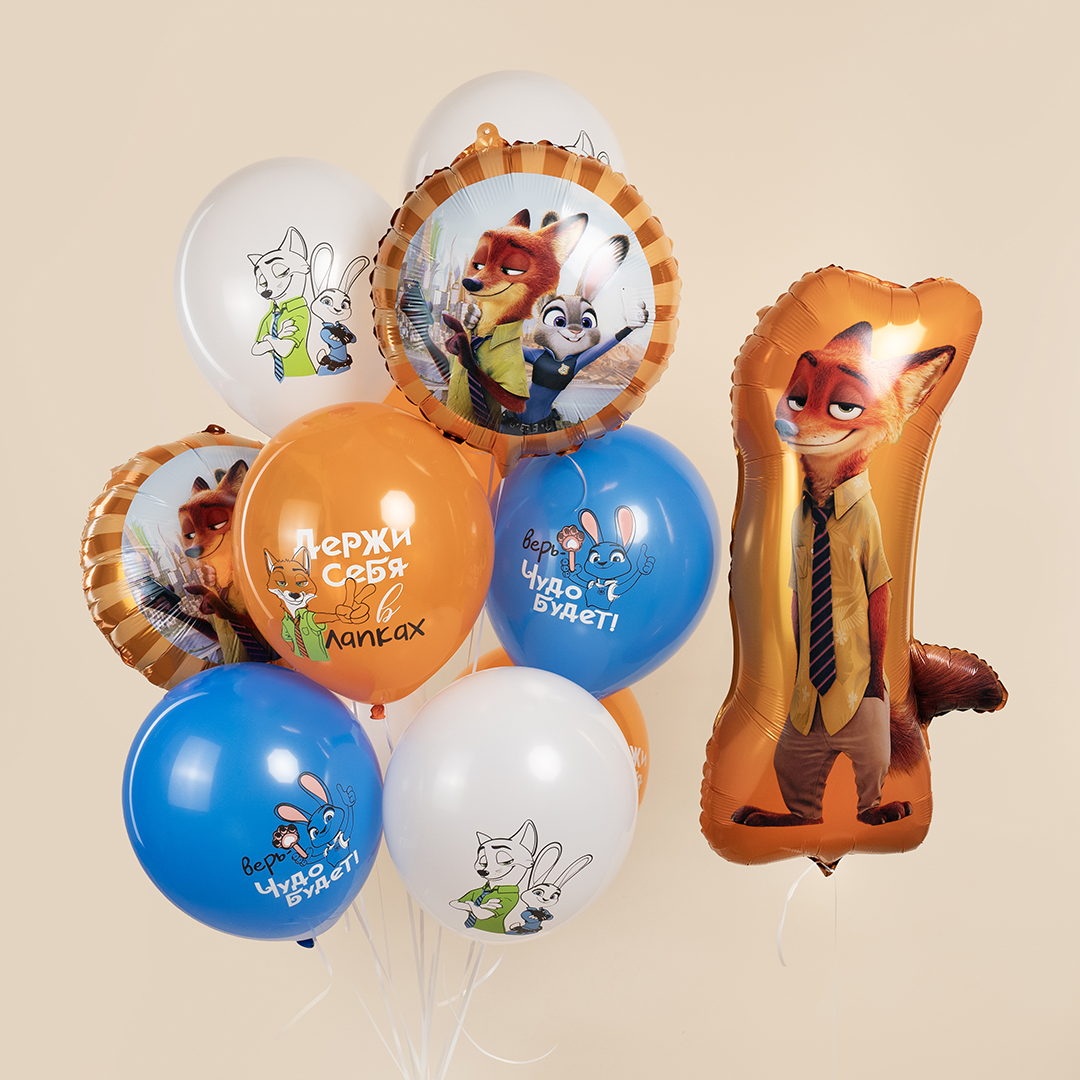 Сет Фонтан Зайчик и Лис оранжевый из шаров с гелием и фигура на грузе.