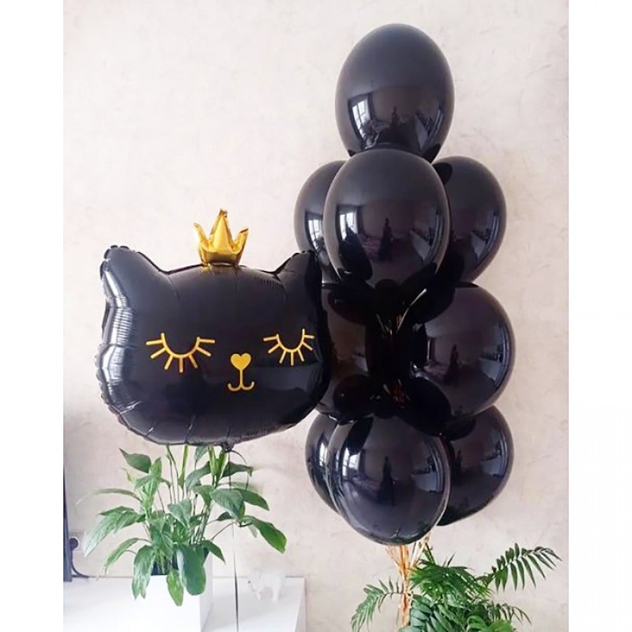 Сет Принцесса с кошкой чёрный из шаров с гелием