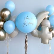 В составе: 2 фонтана по 10 шаров (с хромом), шар большой (60 см) с надписью и кистями, цифра метровая. На грузах.