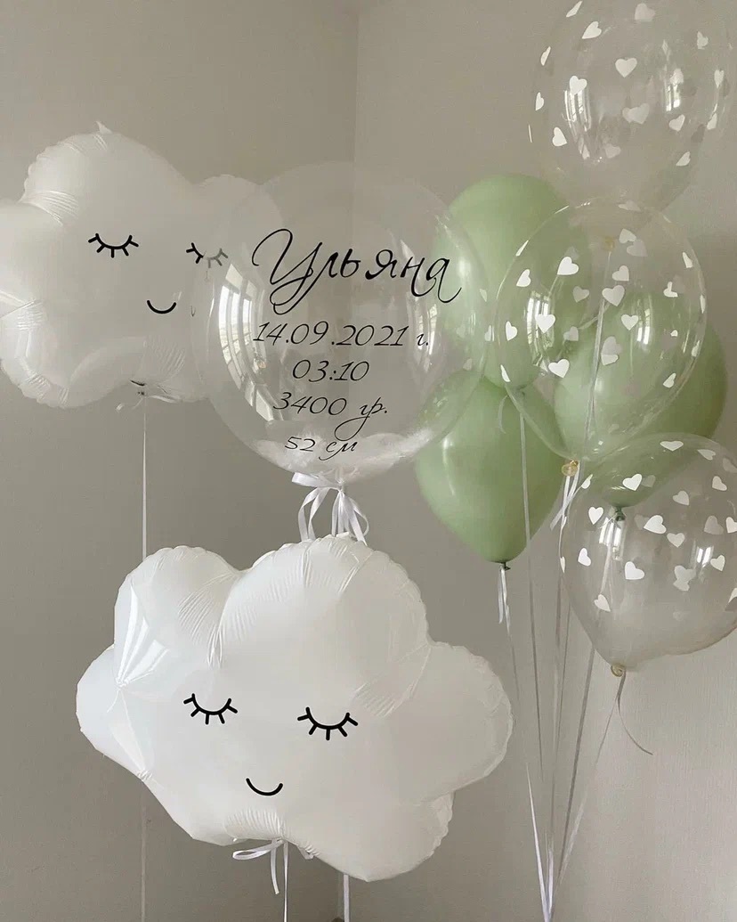 Сет оливковый с облачками на выписку с гелием
