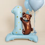 Сет с мишкой и фонтаном для мальчика из шаров с гелием и воздухом
